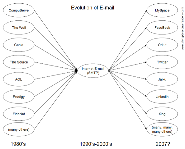 Long term I think we’ll see convergence, in the same way that walled garden email converged and IM is starting to converge now.