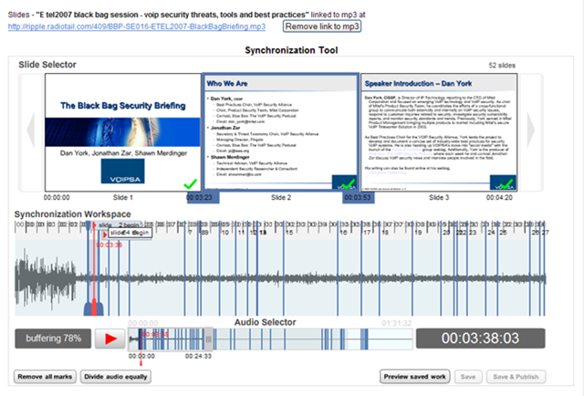 Have you ever heard a podcast or recording of a presentation and wished you could see the slides or materials that went along with it? Or perhaps even worse – you have the slides, but you wish you could know when the speaker advanced to the next slide? Wouldn’t it be great if there was some way you get the audio synced to the slides?