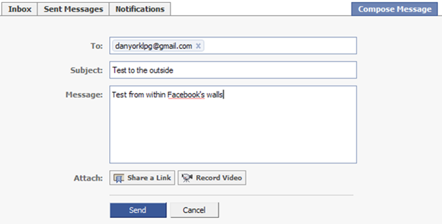 Now you can enter a friend’s email address into the To: line when you send a message or share an album, and Facebook will email them the message. Your friends will be able to reply without signing up, and they will be able to see content you share with them. Keep in mind that all rules of privacy still apply; some Facebook content that you share (photos, groups, notes, etc.) won’t be visible to your friend.