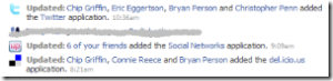 This alone makes it quite interesting as a way to integrate and distribute applications, but the more intriguing aspect of the “Platform” is that applications have access to the “News Feed” that appears on your own Facebook home page and appears in a similar fashion to your Facebook “friends”. There’s two elements here of interest: