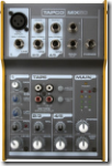 But I can’t seem to find this in a small mixer. I can get my #1 fairly easily- the picture here is of the Tapco Mix 50 and, let me tell you, it’s wonderfully small! About 5 x 7 inches. Perfect to stick in a travel bag… but it doesn’t do a mix-minus. For that you have to go to a Mix 60, which is just a bit bigger. The Behringer UB502 is similar in size… but it, too, doesn’t do a mix-minus. I’ve looked at some of the USB or Firewire audio interfaces… but I want the simplicity of an analog mixer – and when I’m doing a mix-minus I’m very often recording to my Marantz PMD-660 so an audio interface doesn’t help much there.