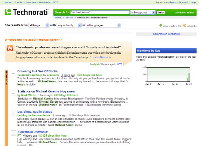 So I’ve naturally been watching the growth and challenges of Technorati over the past few years. It’s definitely done some fantastic things… and also had its share of challenges. I’ve had my own issues with the site redesign earlier this year. It has, however, provided us with one way to sort through all the zillion things happening out in the world of social media. Given that absolutely anyone can set up a blog and start publishing, how do you sift through all the sites out there to understand what and who matters? Technorati’s attempts at Authority and Ranking have been one way to help with that. They will continue to be, but the other reality is that the space they are in, “search”, is awfully crowded. Technorati was the first major site to really focus on searching blogs, but now of course Google and every other search site does that. Technorati’s expanded its focus, but so have all the others. It’s definitely an interesting time for them, I think.